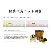 こちらの商品には必要な仏具が付属しております。追加のご購入の必要がなく安心です。(ろうそくや線香などは別途ご準備ください。